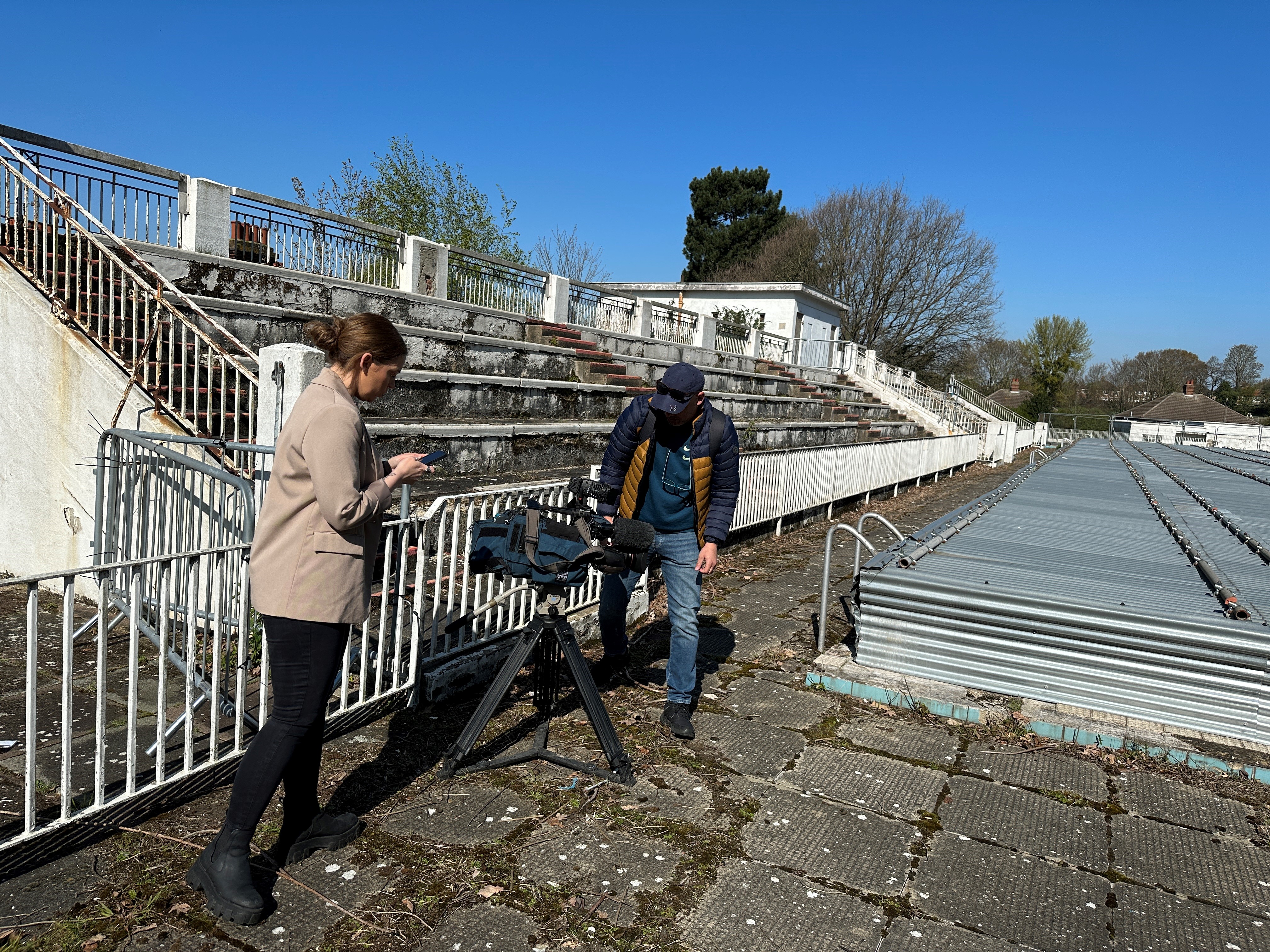 BBC News: East of England Look East filming at Broomhill Pool this morning. Zoie O’Brien’s report will cover Tom Hunt MP’s Adjournment debate in parliament this afternoon along with latest images of Ipswich’s Grade II listed lido.