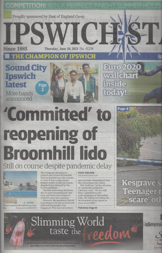 Mark Murphy (BBC Radio Suffolk) interview with Mark Ling (Broomhill Pool Trust Chairman). What is the latest update on Broomhill Pool’s restoration? Does Ipswich Borough’s new proposed Ipswich Aquatics Centre (planned for 2027) have any affect on the Broomhill project?