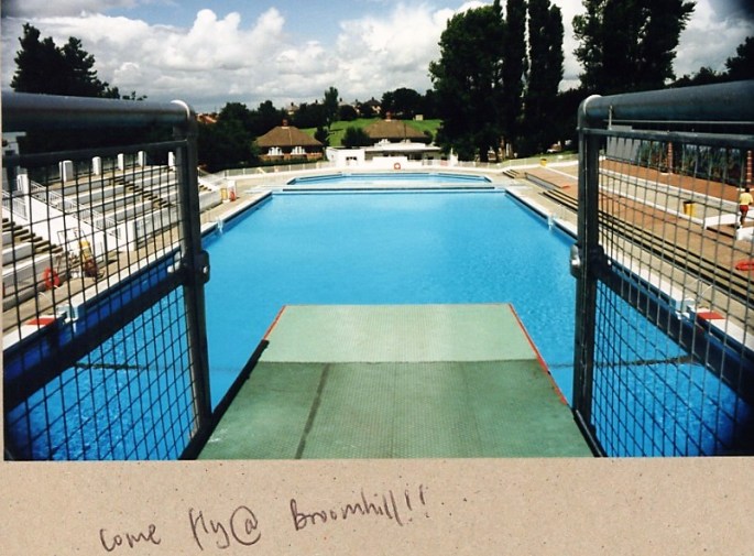 I was born in the 1950s and Mum frequently took me to Broomhill for the day, queuing to get in, using the baskets for our clothes and shoes, walking through the cold shower/foot bath. Then having to go out at lunchtime and queue all over again! Although she was a strong swimmer (I could not keep up) I never knew her to dive from any of the boards, so maybe she didn’t.