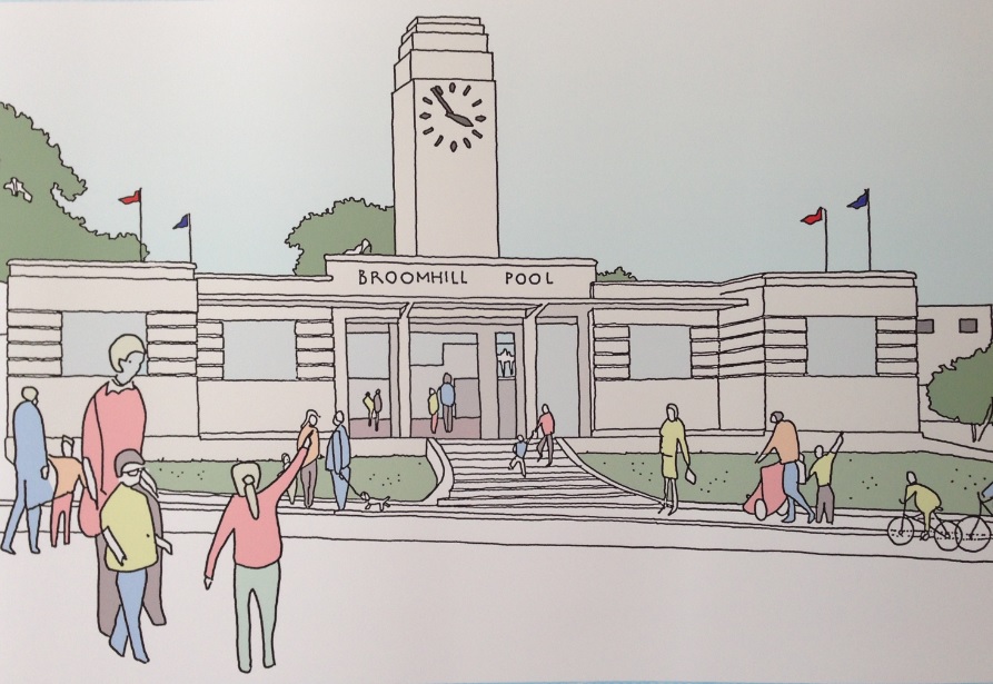 See James Sharpe’s 2001 short film (4 minutes) “The Pool” plus rare 1947 footage of Broomhill Pool featuring a high diving display with British Woman’s Champion Betty Slade, and a family day out at the pool. Credit Edwin Mason. https://www.youtube.com/watch?v=6OvlKgrlwtA